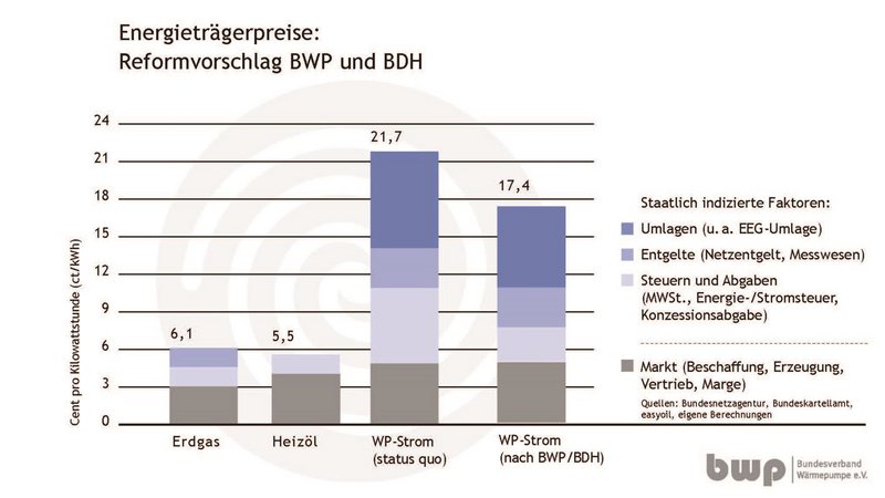 „Abgaben, Steuern und Umlagen treiben den Strompreis in die Höhe. Die Stromrechnung eines Wärmepumpen-Kunden geht durchschnittlich zu 62 Prozent an den Staat - während fossile Brennstoffe kaum belastet werden“, erklärt der BWP-Vorstandsvorsitzende, Paul Waning. „Wir brauchen dringend eine strategische Ausrichtung der Energiepolitik. Hauptaufgabe muss es sein, dafür zu sorgen, dass sich CO2-Einsparungen für Verbraucher und Unternehmen wirtschaftlich lohnen und dass sie bei notwendigen Investitionen für ein klimaschonendes Heizsystem unterstützt werden“, so Waning weiter.