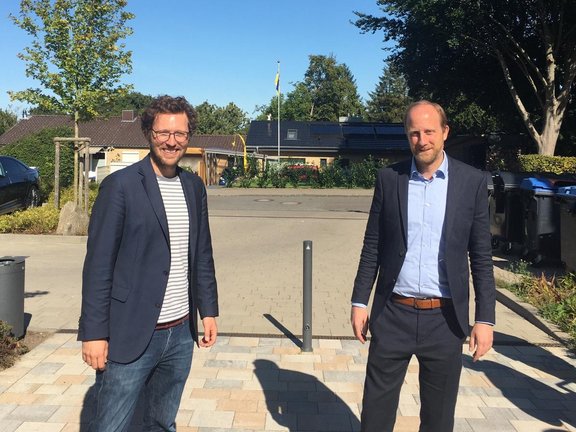 - Energiewendeminister Jan Philipp Albrecht und Dr. Martin Sabel vom BWP besuchen Wohnquartier mit Wärmepumpen und Nahwärmenetz in Eckernförde