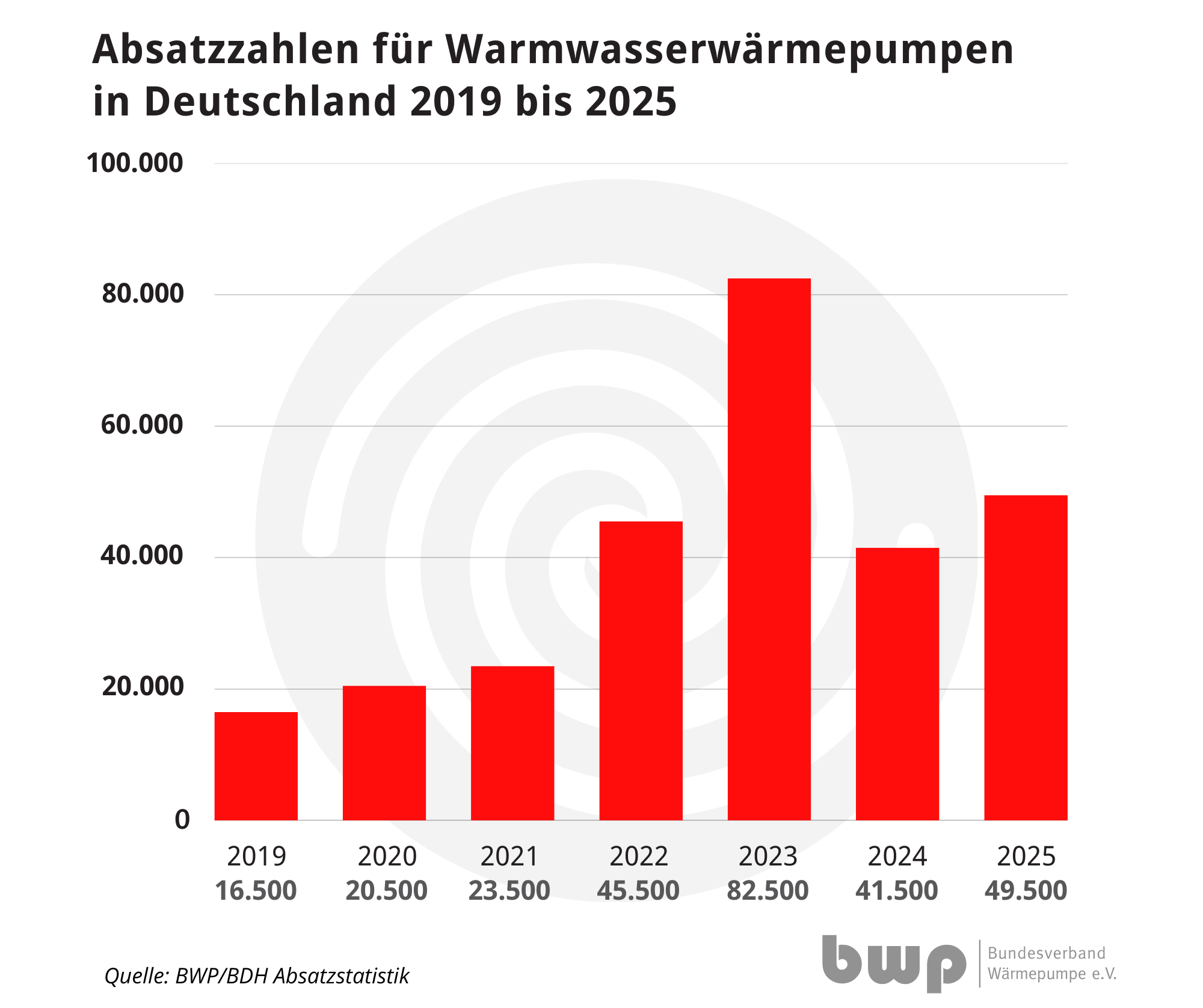 Die deutsche Wärmepumpen-Branche beschäftigt rund 70.000 Personen und erwirtschaftet einen Jahresumsatz von rund 3,5 Milliarden Euro. Derzeit werden in Deutschland knapp unter zwei Millionen Wärmepumpen genutzt. Die hier verbauten Anlagen werden zu rund 95 Prozent von BWP-Mitgliedsunternehmen hergestellt.