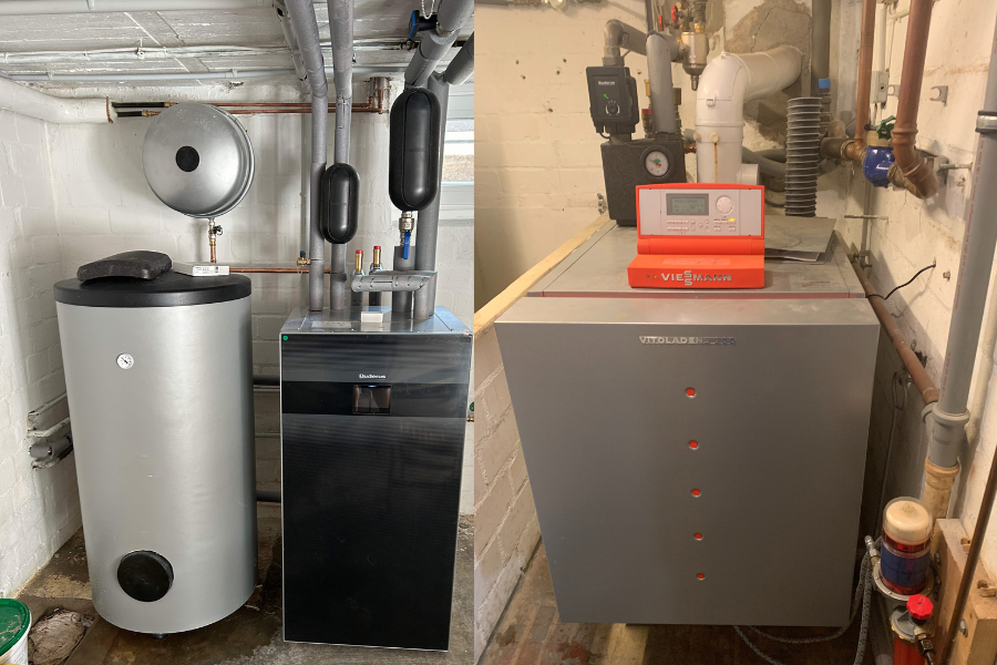 Die Wärmepumpe arbeitet mit einer Vorlauftemperatur von maximal 45 Grad Celsius bei –10 Grad Celsius Außentemperatur und erreicht dabei eine Jahresarbeitszahl von 3,9. Durch den Einsatz der Anlage werden jährlich rund 4.000 kg CO2 eingespart, was zu einer Kosteneinsparung von etwa 500 Euro pro Jahr führt.
