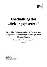 Abschaffung des „Heizungsgesetzes“ Rechtliche Zulässigkeit einer Aufhebung von Vorgaben für die Heizungstechnologie beim Heizungstausch Bundesverband Wärmepumpe e. V. August 2025 re|Rechtsanwälte…