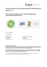Positionspapier des Bundesverbands Wärmepumpe (BWP) e. V. zu den anstehenden Reformen des Gebäudeenergiegesetzes und der BEG-Heizungsförderung Berlin, 29.09.2025 Ansprechpartner: Dr. Martin Sabel …
